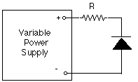 2. Set the variable power supply to several voltages between 0 and 20 volts. For each voltage, measure the voltage across the diode and the voltage across the resistor R with your digital multimeter and calculate the current through the diode from the voltage drop across R (if it's measurable).