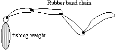 You can make and test a simple scale model of a bungee jump using some rubber bands and fishing weights. Loop several rubber bands together to make an elastic rope and then attach some weights.