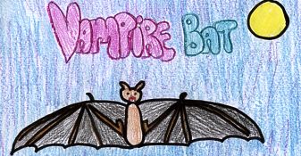 Vampire bats feed on the blood of cows, pigs, and horses. An adult vampire bat's wing span is about 32 to 35 cm long. They don't suck blood but rather make small cuts and lick the blood. They have 2 lateral grooves on their tongues that help them lick the blood. An adult vampire bat drinks about 5 teaspoons of blood a day. Vampire bats live in Latin America.