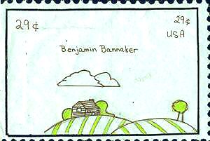 This commemorative stamp shows what kind of plantation he lived on. He worked every day on his farm. He died in 1864 ,that is the end of Benjamin Bannaker.