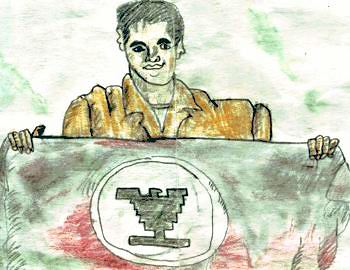 For my stamp, I drew a picture of Cesar Chavez. My picture shows him holding a flag. I drew this because that's my favorite picture and I like it.