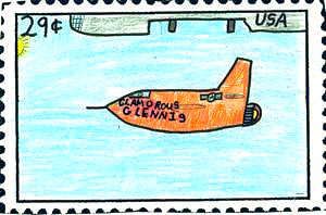 This stamp commemorates Chuck Yeager. He is seen firing the fourth rocket in the stamp. Chuck also broke Mach 2.5.