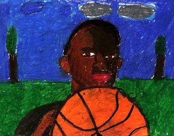 is light brown. In the picture I am playing basketball. I like this picture