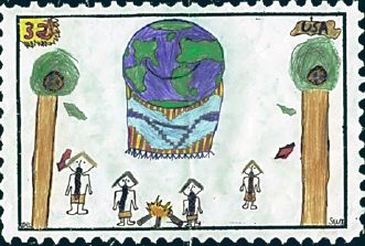 This stamp represents the Southwest Indians. My drawing shows Mother Earth and other religious things. The S.W.I. believed that Mother Earth was in all living things. They also believed that no can own land. No one can own land because it was everyone's. Also on my stamp I show a dance called the Snake Dance. This dance is done in August, for 9 days. Part of the dance was to put live Rattle snakes in their mouth! This ceremony was for soil, rainfall, crops, and sunshine. There's also a Indian rug on my stamp.