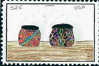 My stamp commemorates the Southwest Indians' pottery. They made pottery. It was very pretty and had many interesting designs.