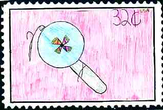 This commemorates the gourd rattle. It is made by the Southwest Indians. They made it out of a gourd, wood and string. On there is a sort-of cross design. They use paints to decorate it. They made the paints out of minerals and grains. It could be use for ceremonies or parties too.
