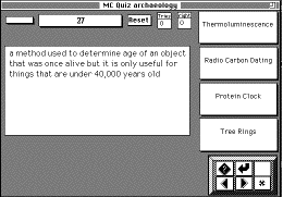 inform.umd.edu Educational_Resources/ Faculty_Resources_and_Support/ ChemConference/ Software/ Hypercard/ MultimediaExamples/ GraphicMultChoice.sea.hqxThis stack was constructed using the Graphic Multiple Choice Template. A working example of a text multiple choice quiz stack, on a 5th-grade archaeology unit, can be downloaded also, as can the Template that was used to construct it.
