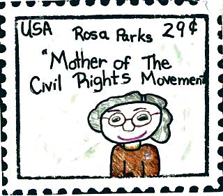 This stamp Commemorates Rosa Parks Rosa Parks who is now 81 years old and is known as the Mother of Civil Rights Movement. the word Rosa Parks stands for fairness because she and others worked to get fairness. Rosa's gentle looking face on the stamp shows how she was, still she wanted fairness.