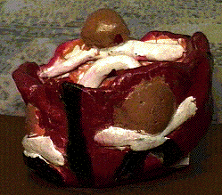 My pottery is a sculpture of the Messiah (in the Pot) and his children. The Messiah is telling his children a folktale about the colors of the rainbow and the circle of rainbows you would find in the earth.