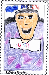 This stamp commemorates Joe Magarac the famous steelman. No one knows