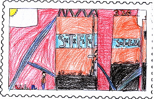 This stamp shows when Joe is in a steaming pot of steel so that they can