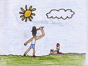 Once upon a time John Henry was born. He always wanted to work on the railroad. He said he was born with a hammer in his hand. After the Civil War he was a free slave. He didn't know what to be. Then he heard hammers clanking. He saw people working on the railroad. John Henry asked if he could help. But they said no. He said, "Let me prove myself worthy." The workers said, "Okay."