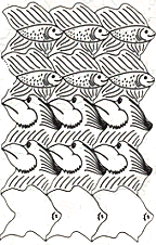 In this lesson, each student selected a basic pattern. They first tessellated the pattern to fill a complete 8.5" X 11" page. Then they were asked to see if they could create a design of an animal or object. The results of this year's Escher-like drawing are displayed on this Web page. It never ceases to amaze me how each group of students stretches their imagination a little more than the classes of previous years.