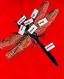 A young dragonfly is called a nymph. It begins life in the water. It feeds on tiny fish and insects. It can live in the water for up to five years. A nymph does not fly. It breathes through gills. It sheds its skin as it grows. An adult dragonfly has four large, fragile wings. It has six legs. It can perch, but it can't walk. It uses its legs to make a basket to catch bugs in the air. it can fly 50 to 60 miles per hour. It buzzes by flapping its wings up to 1,600 times a minute. A dragonfly is helpful to people because it eats mosquitoes. It lives near the water. It eats thousands of mosquitoes.