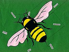 The bumble bee is a hairy bug with a stinger. It is not very big. It is black and yellow. The bumble bee has six legs and four see-through wings.