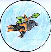 The Maryland state bird is the Baltimore oriole. The male oriole has orange and black feathers. The Baltimore oriole has the same colors as the Calvert coatofarms and the Maryland state flag. The female Baltimore oriole has olive yellow and rusty black feathers. A nick name for the male oriole is "Lord Baltimore." A nick name for the female oriole is "Lady Baltimore." Lady Baltimore makes a nest that looks like a sack, but is as strong as a wooden basket.
