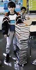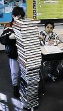 Next, students used washers to test live load. Most of the structures were able to hold more weight than we had available in washers, so they began testing live load using books. Two of the structures were able to hold all of the books!