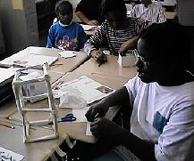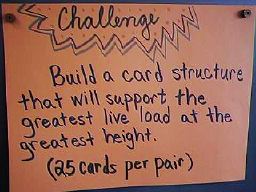 After testing beams and columns to see which shape was the strongest, students were challenged to use 25 index cards and masking tape to build a strong structure.