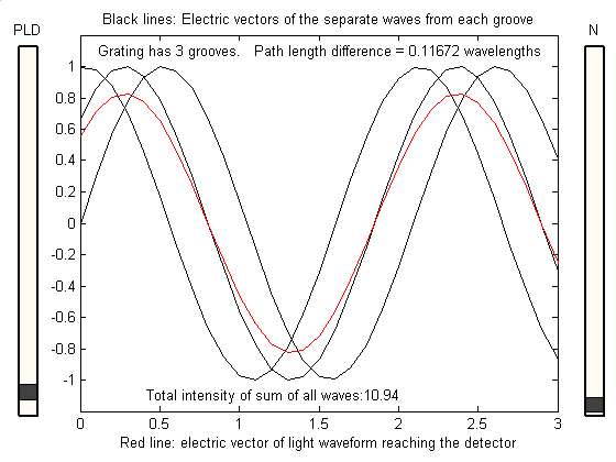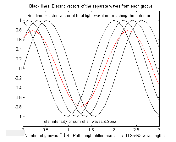 in constructive interference. As the number of grooves N increases (by pressing the up and down cursor arrow keys),