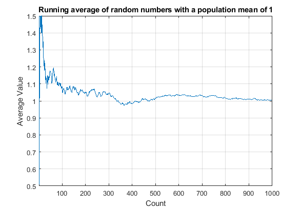 of 1000 random numbers is reduced by a factor of 1/sqrt(1000),