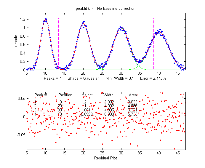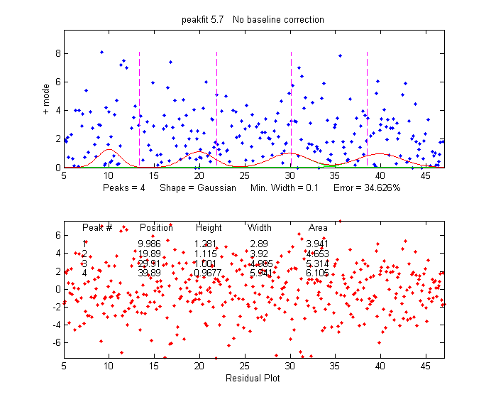 (shape number 5): [FitResults,FitError]=peakfit([xx;yy],26,50,4,5,40,10).