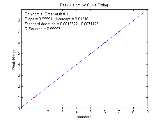 peak heights ('standards'), the baseline amplitude