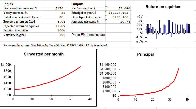 retirement by investing in the stock market, and starting as soon as possible, is so important: over a 30-year working life, the