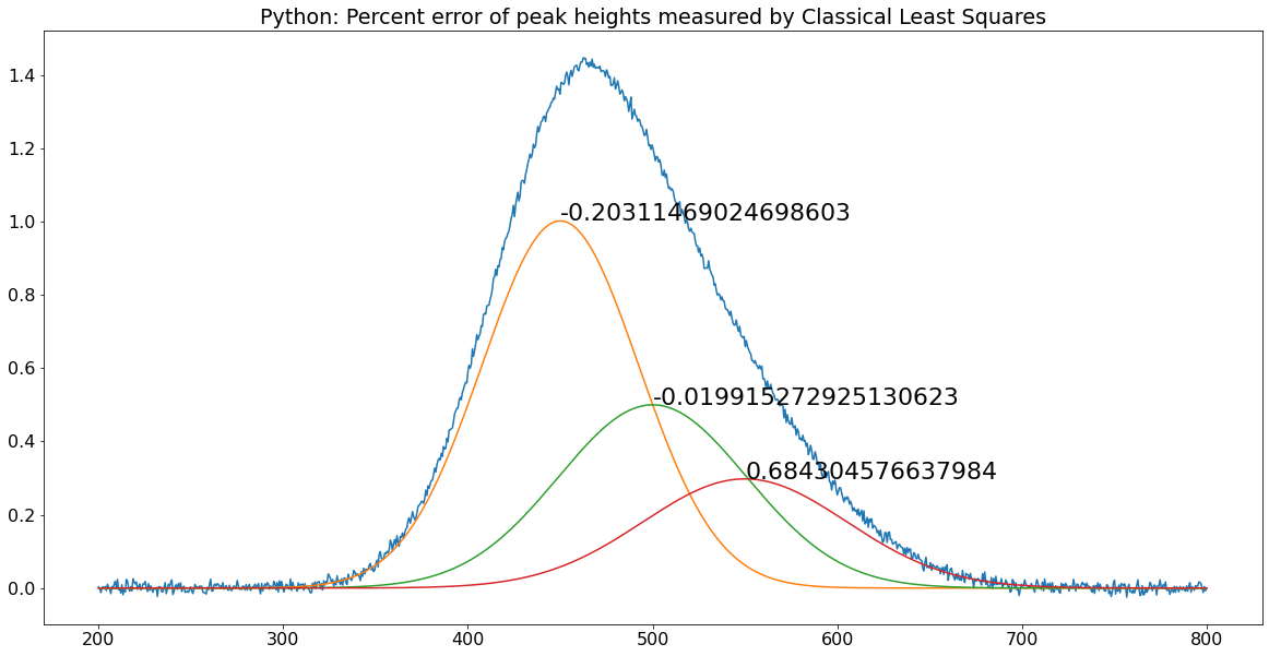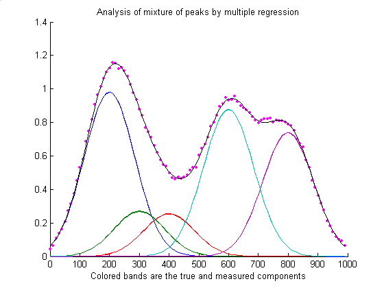 regression) Elapsed time is 0.000937 seconds. Average peak height accuracy = 0.9145% Figure(2): Iterative non-linear peak fitting with peakfit.m Elapsed time is 0.171765 seconds. Average peak height accuracy = 1.6215%