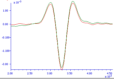 This is called a central-difference method; its advantage is that it does not involve a shift in the x-axis position of the derivative. It's also possible to compute gap-segment derivatives in which the x-axis interval between the points in the above expressions is greater than one; for example, Yj-2 and Yj+2, or Yj-3 and Yj+3, etc. It turns out that this is equivalent to applying a moving-average (rectangular) smooth in addition to the derivative.