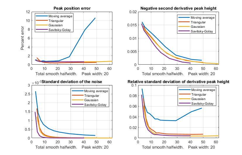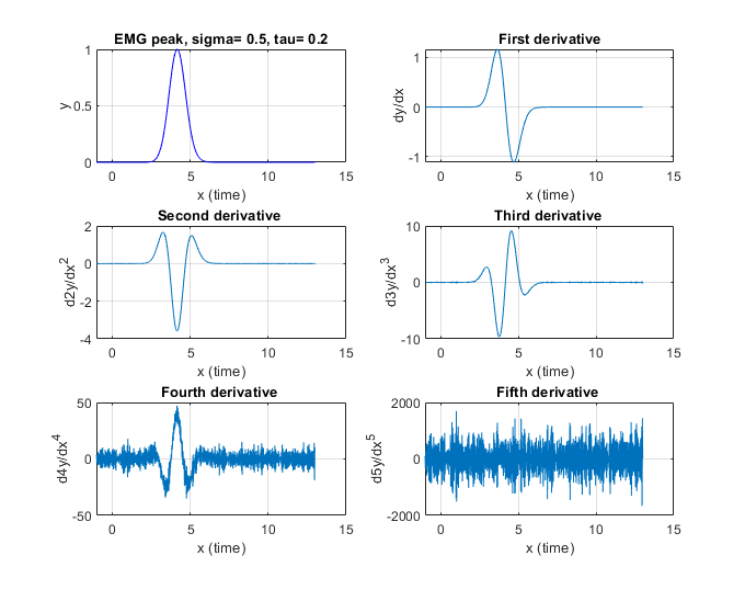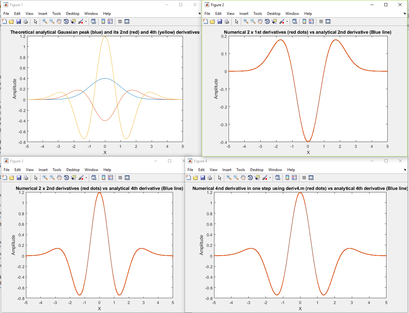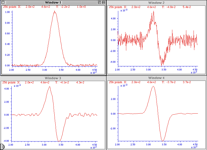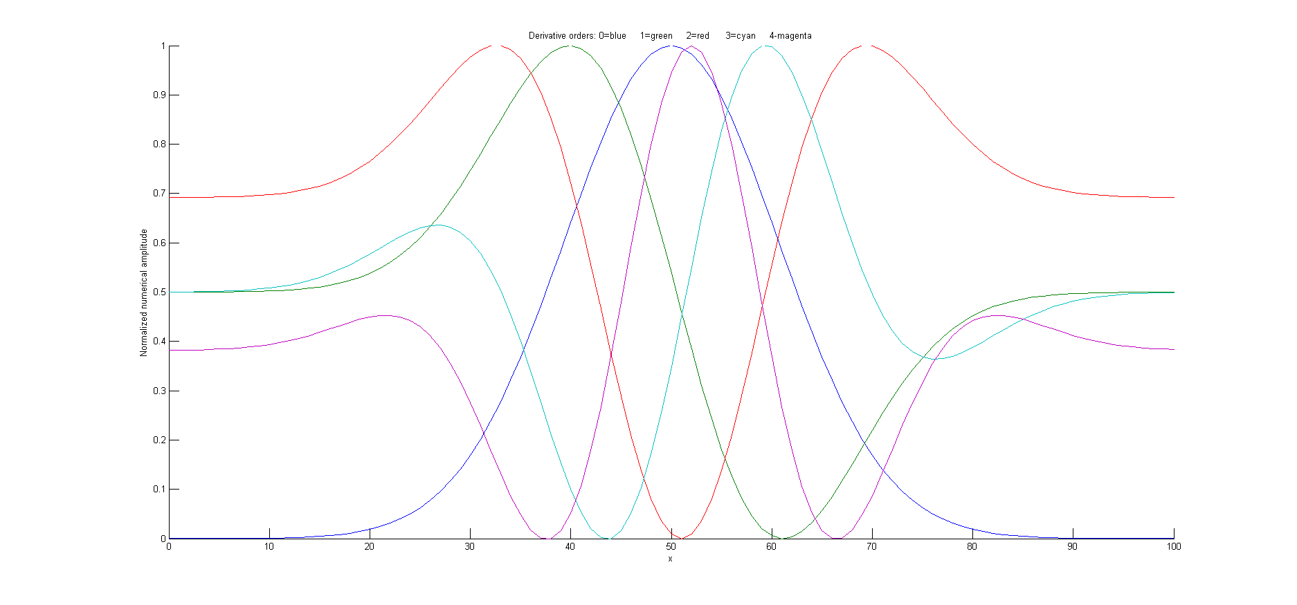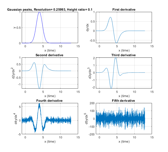 center, and the odd-order derivatives have a zero-crossing at the peak center (Graphic, Matlab/Octave code). You can