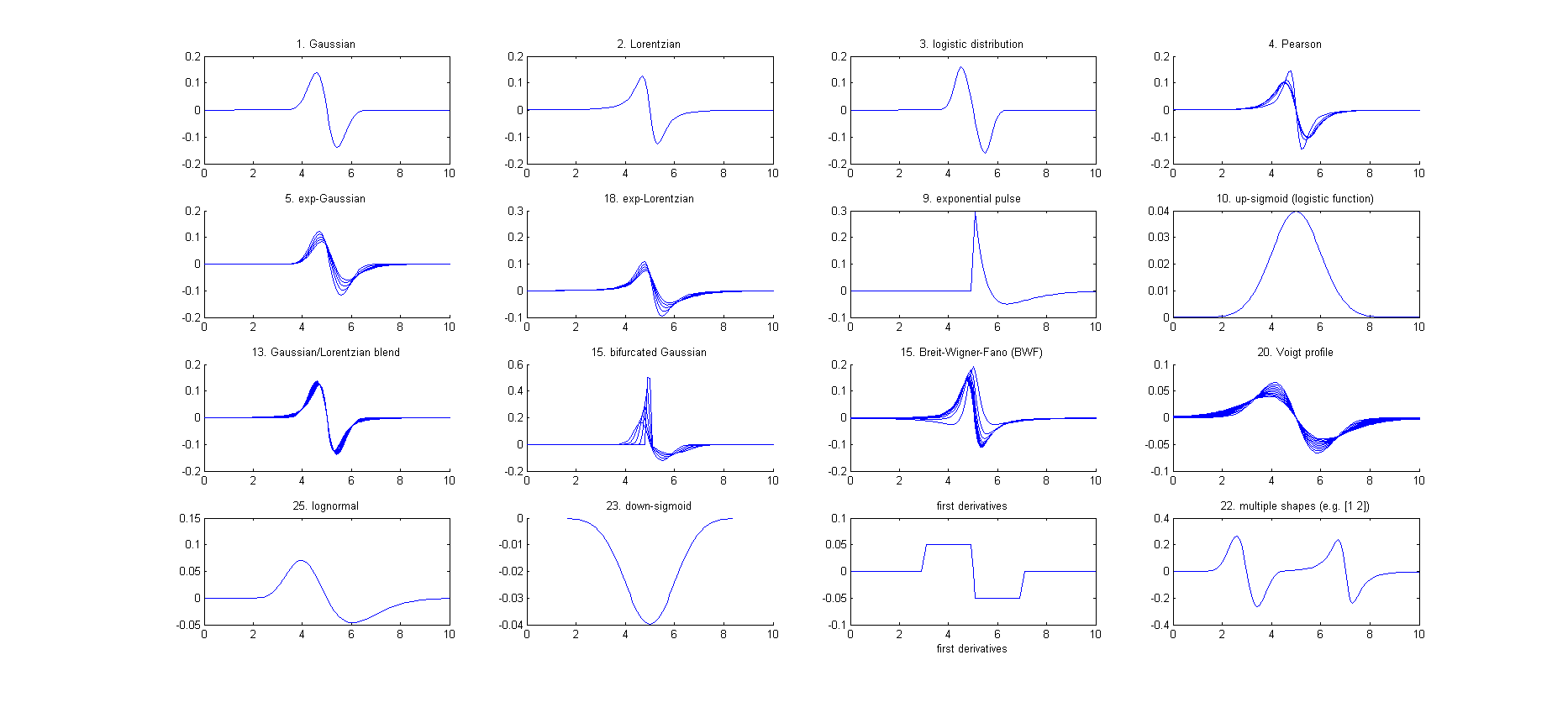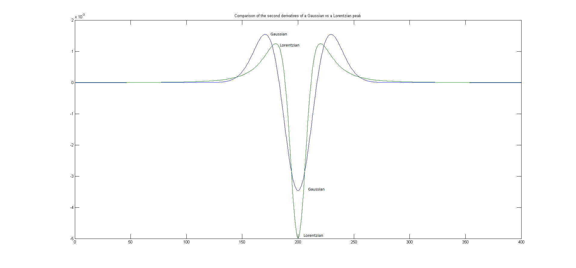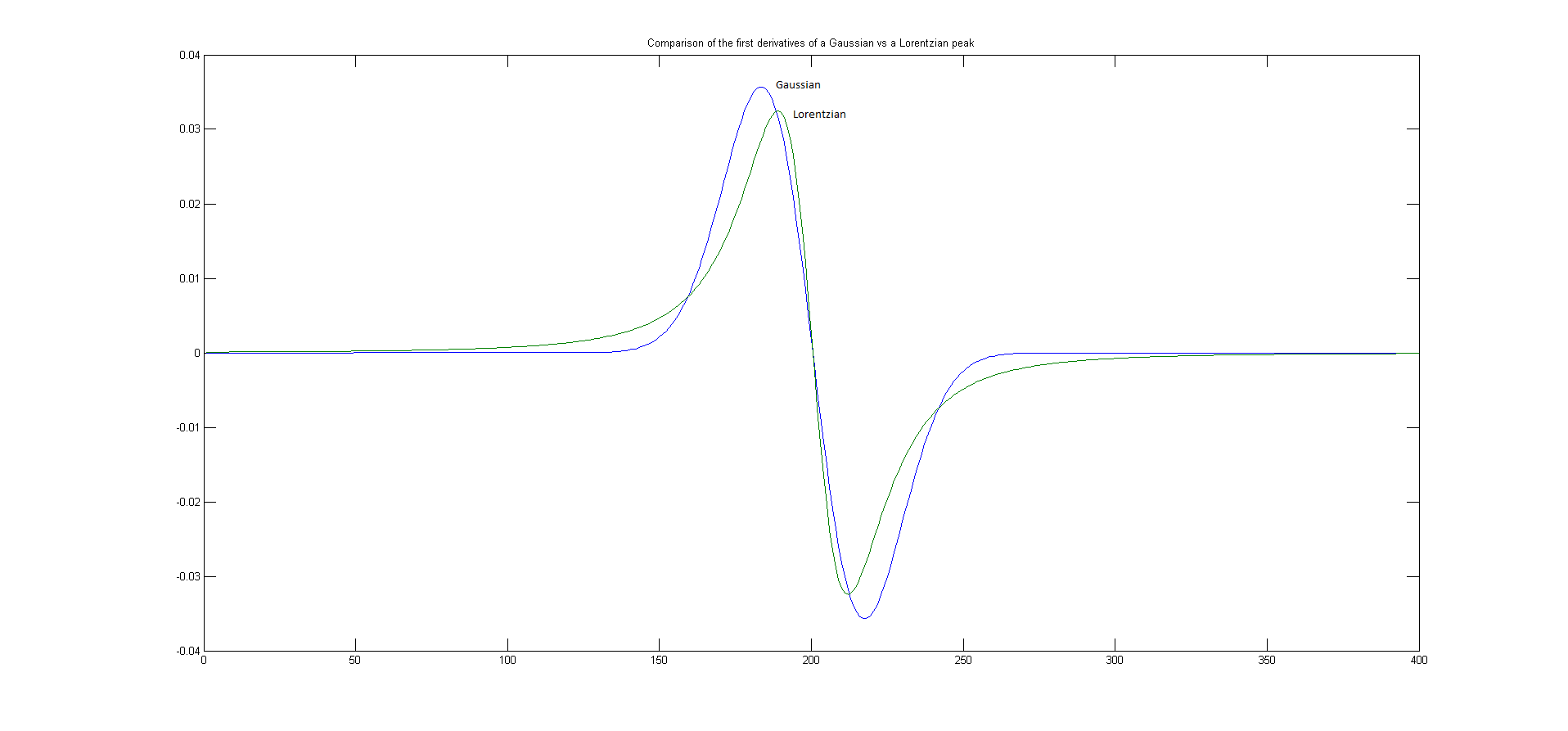 peak shapes have different derivatives shapes: the Matlab/Octave