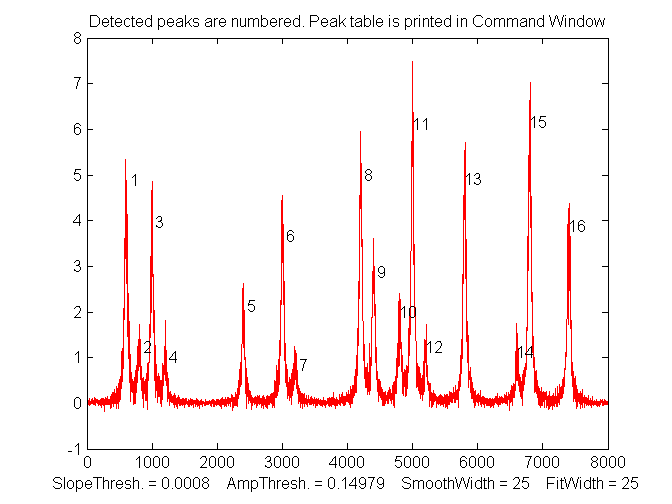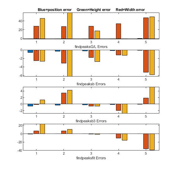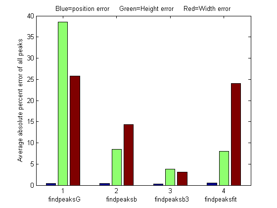 accurate if the peaks are Gaussian in shape (or Lorentzian, in the variant findpeaksL).