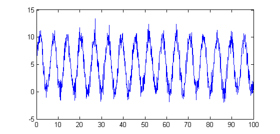 which computes and plots a test signal consisting of a noisy