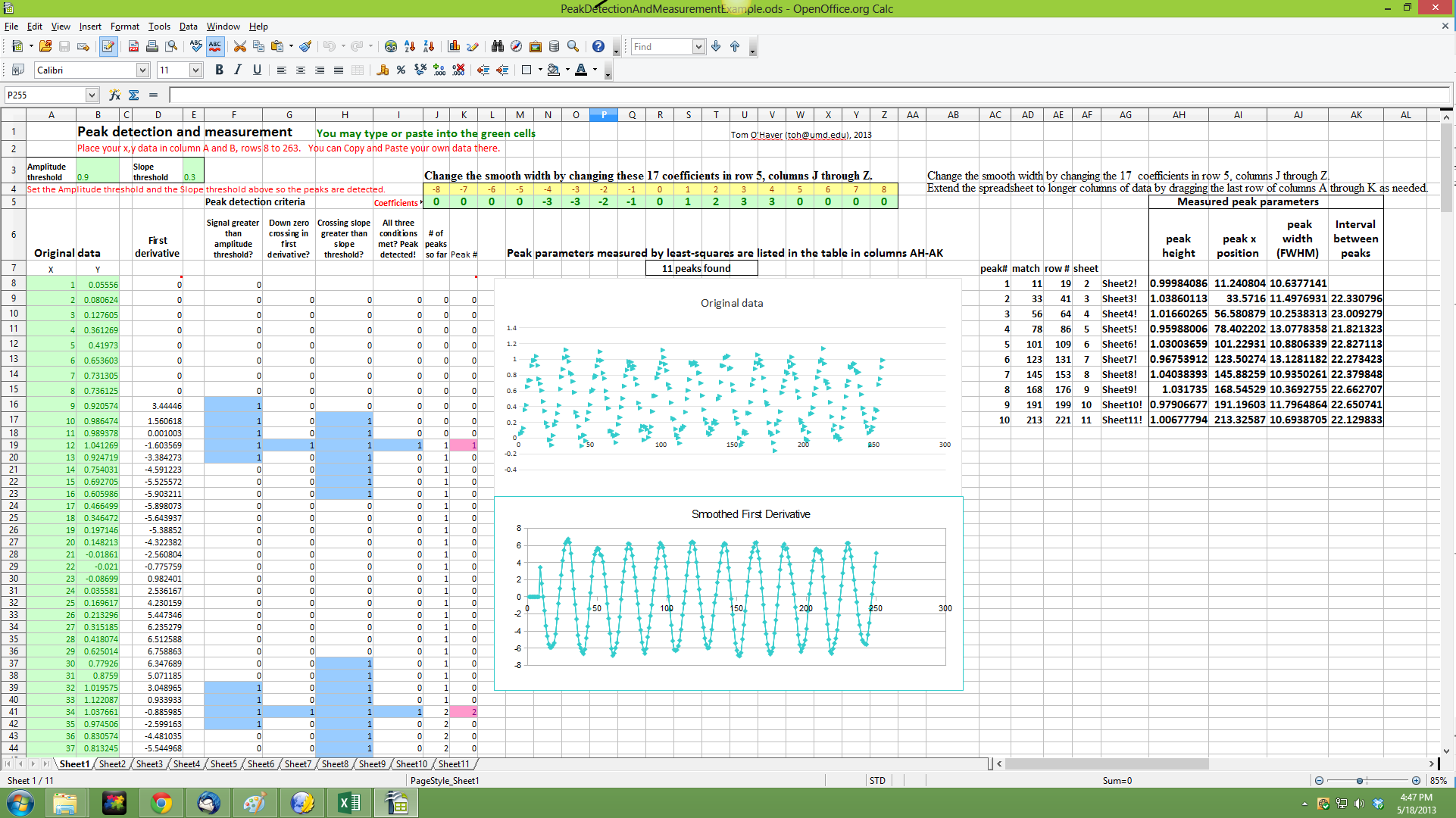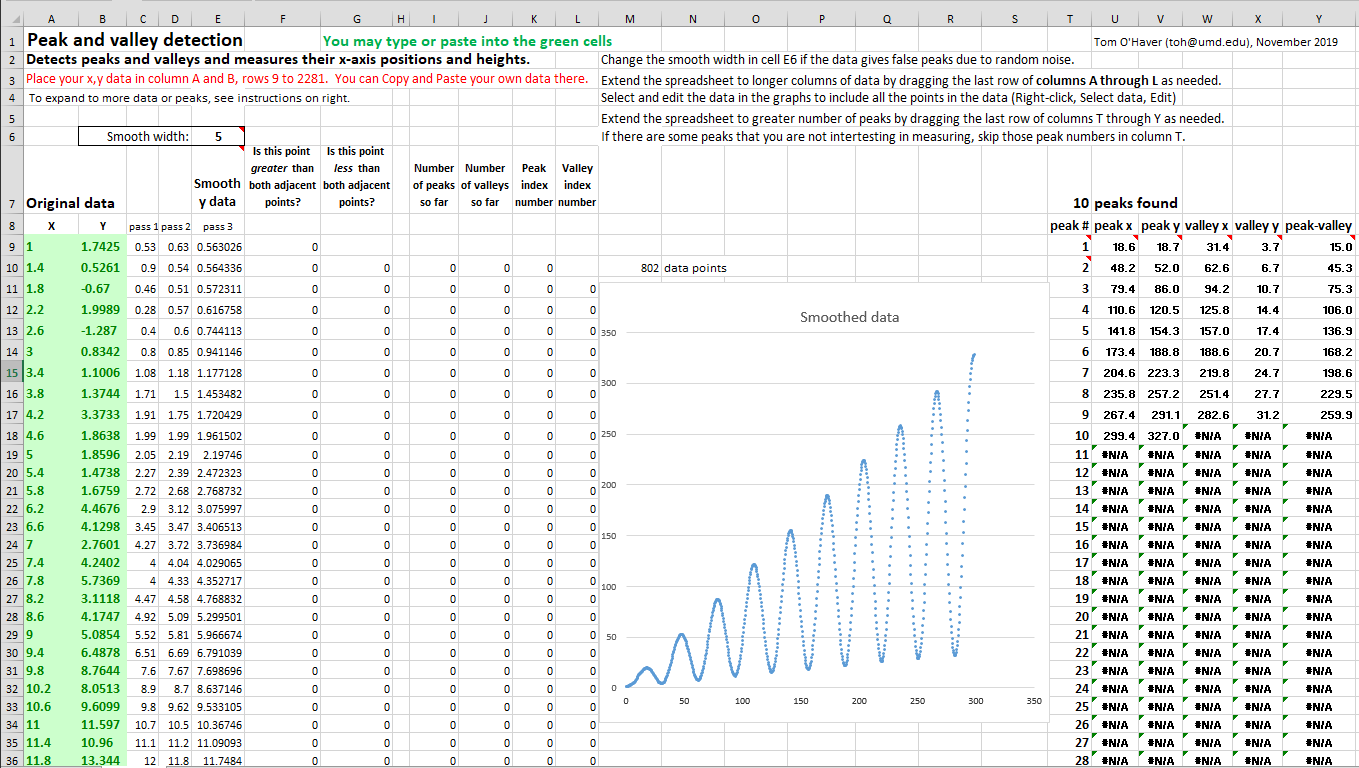 take as an example the spreadsheet PeakDetectionExample2.xls,