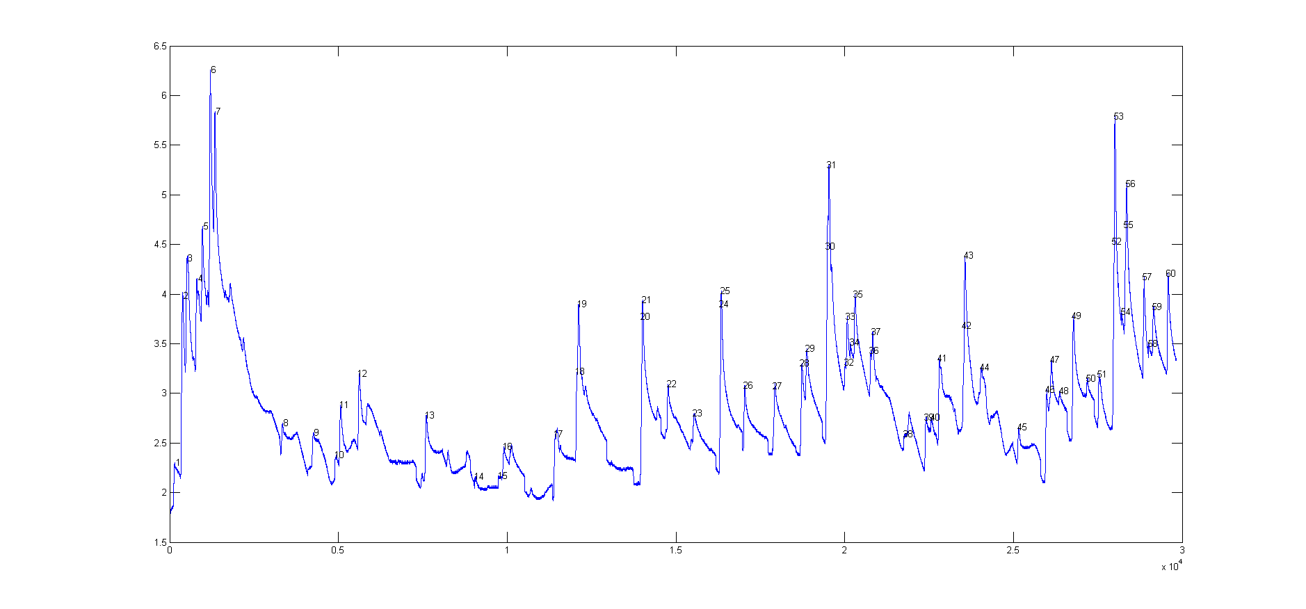 spreadsheet peak finder to the Matlab/Octave equivalent, we can