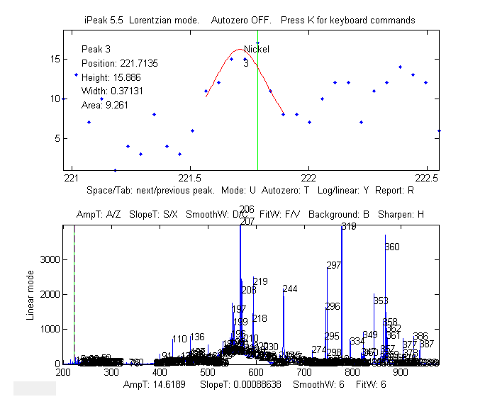 (Matlab only). iPeak runs in the Figure window and use a simple