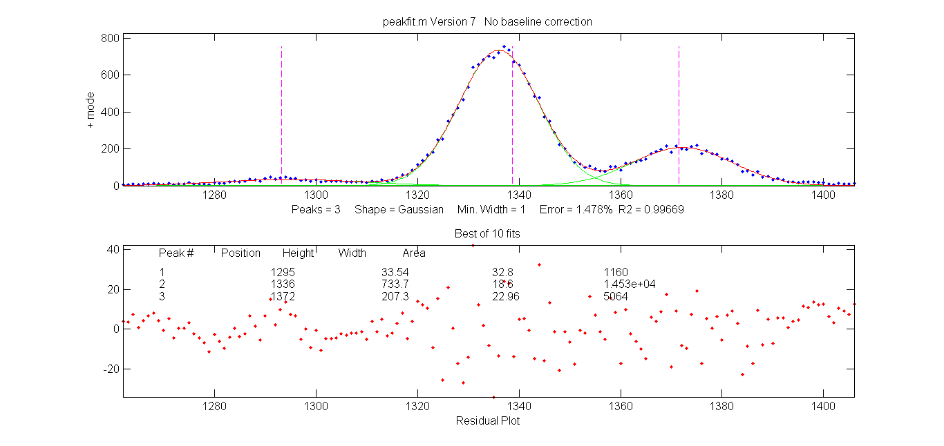 using a least-squares technique, just like "findpeaksG.m". For