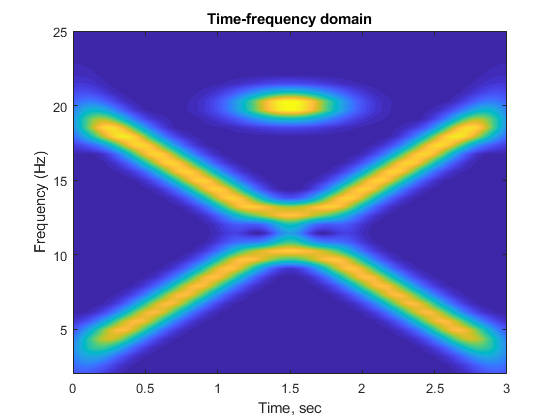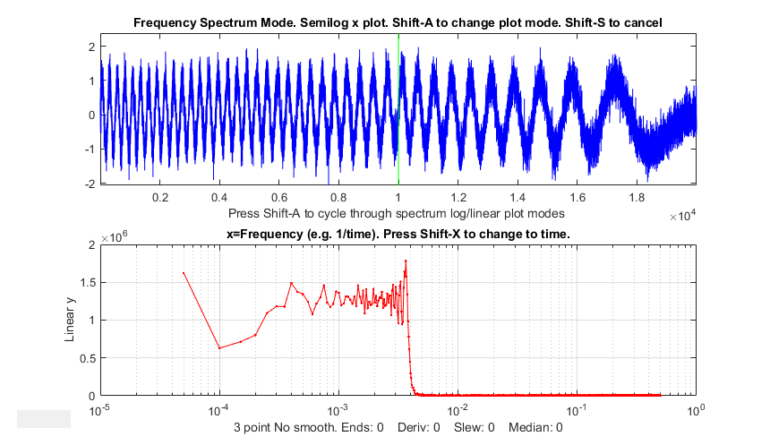 the figure below: 1) a swept sine wave ('chirp') going from 5 Hz to
