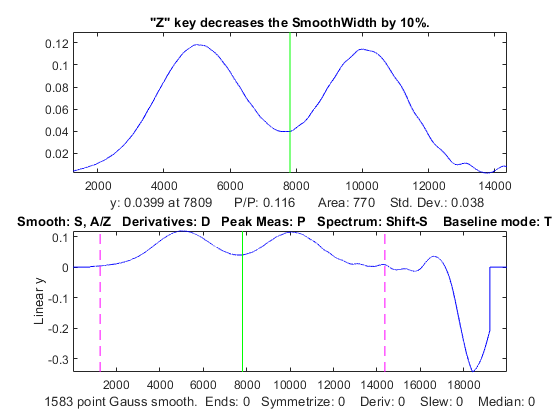 noisy peaks of variable width, a segmented Gaussian-weighted