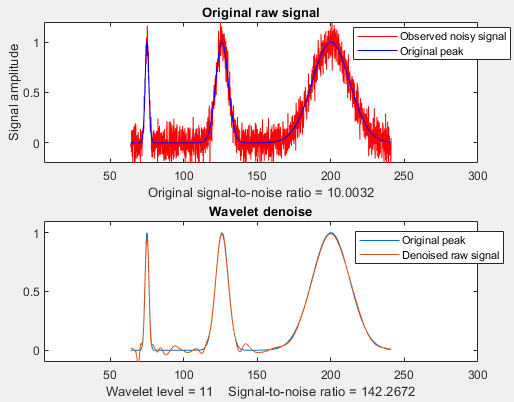denioising function called "wdenoise.m" (syntax:DenoisedData=wdenoise(noisydata,level, ...).