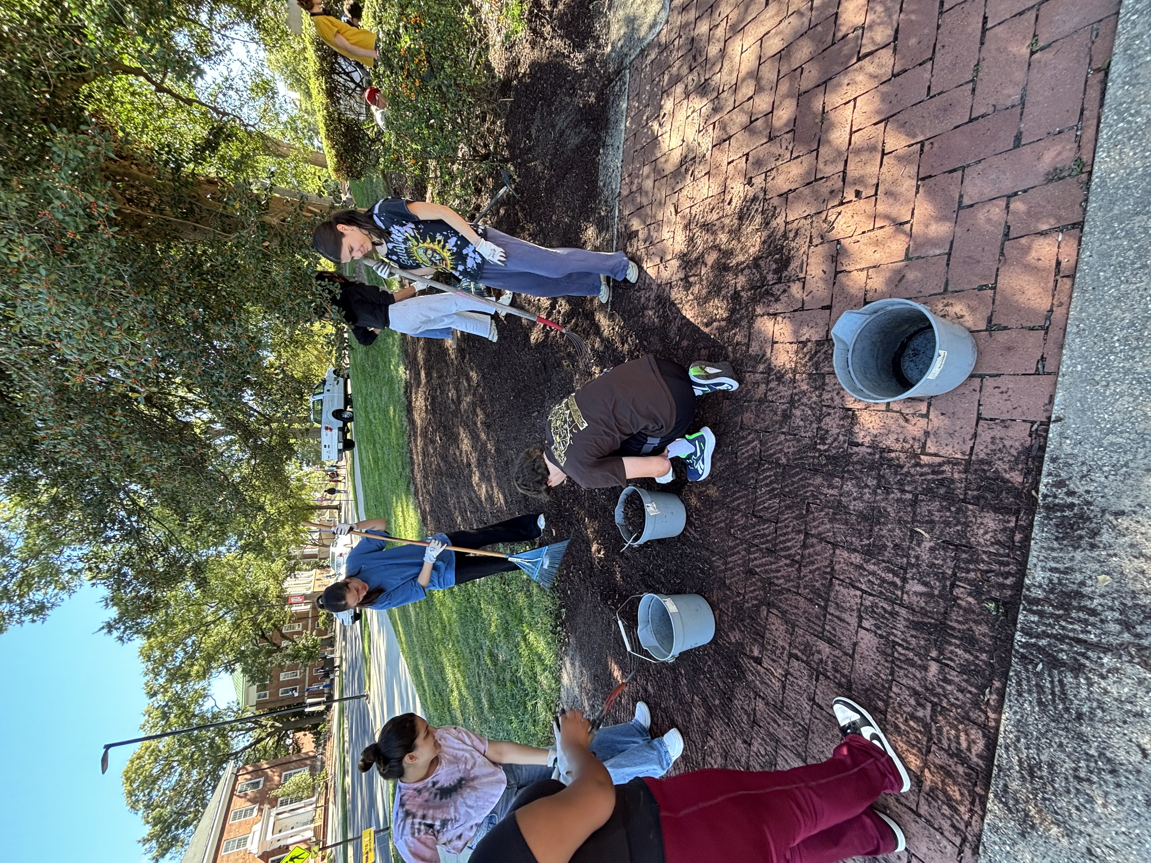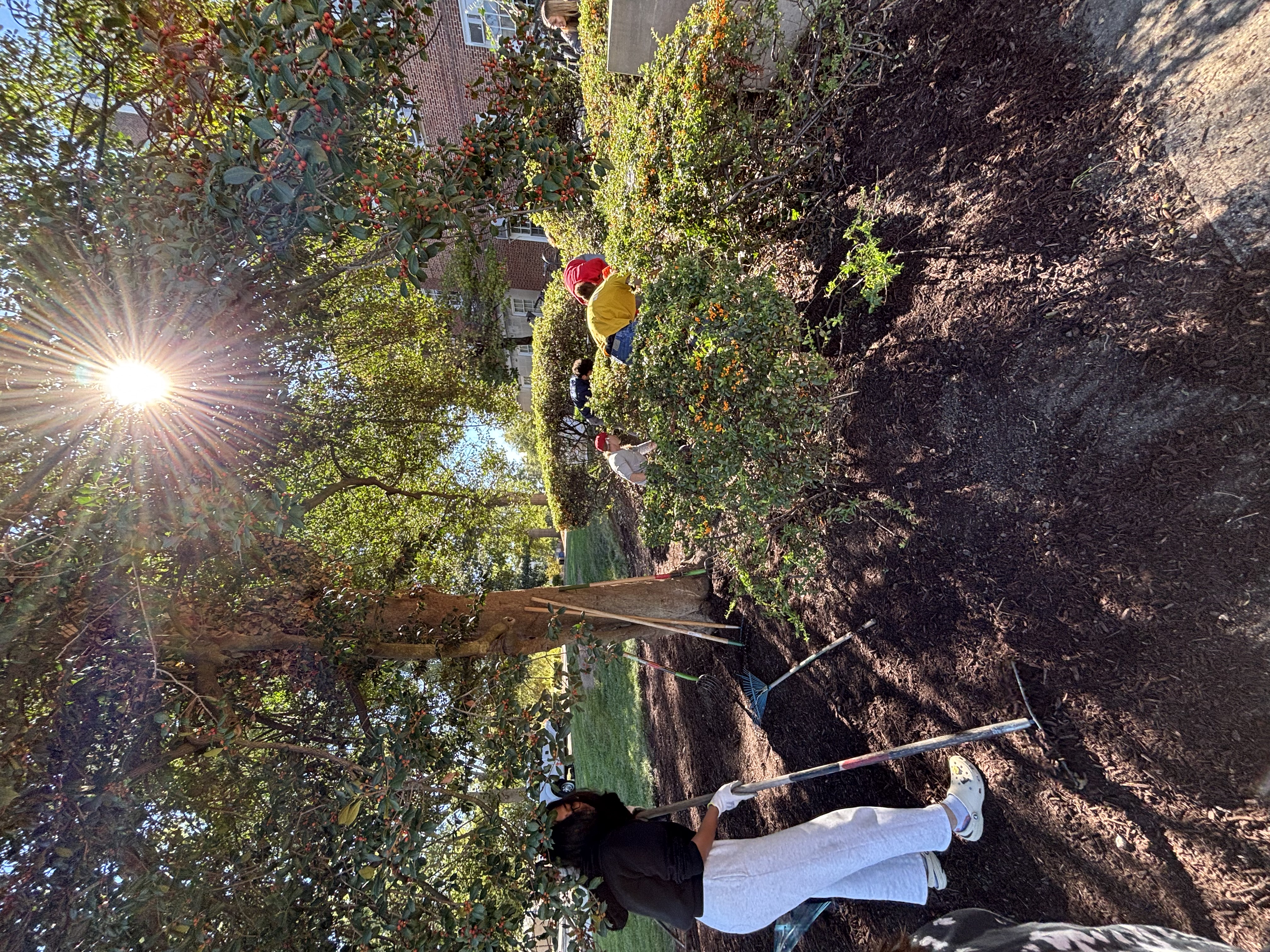 Here are some photos showing the work we did on October 17th! The mulch was a large group effort, with lots of people raking and spreading it out while others added more with the buckets!