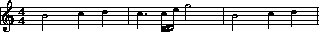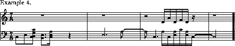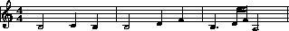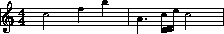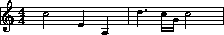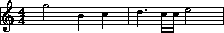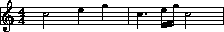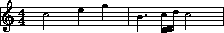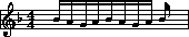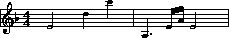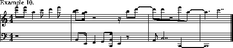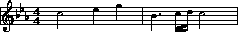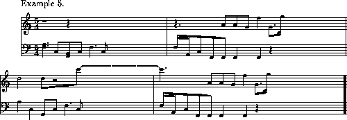The goal of this section is to demonstrate through examples that composing-by-hard-work is inherently algorithmic. The composition process described in the previous section is not specific to a computer program; the process is quite similar to the creative processes of a human. Phrases are built up from motives one by one. Motives are composed by arbitrarily picking from a few themes, modifying them slightly, and adding them to the work-in-progress. For example, we start with the following well-known theme (typeset by Daniel Taupin in his MusicTeX manual):
