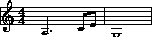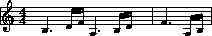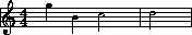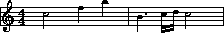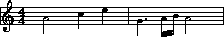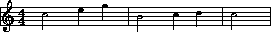 For instance, we can modify the first theme by dividing the pitch values by 4, selecting a subset of the pitches, selecting a different subset of rhythms, and transposing: