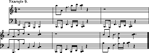 These examples represent an infinitesimal portion of the space created by juxtaposing variations of just one theme against each other. The space gets exponentially larger as more themes are introduced. The computer is far better suited to performing routine functions repeatedly than a human is, so it is appropriate to assign the task of generating all possible variations to the computer. We have redefined our problem: now, the `intelligent' part of music composition is no longer to define music composition; it is to be able to distinguish between `good' and `bad' material. While it is no trivial task, it is nonetheless a step in the right direction.
