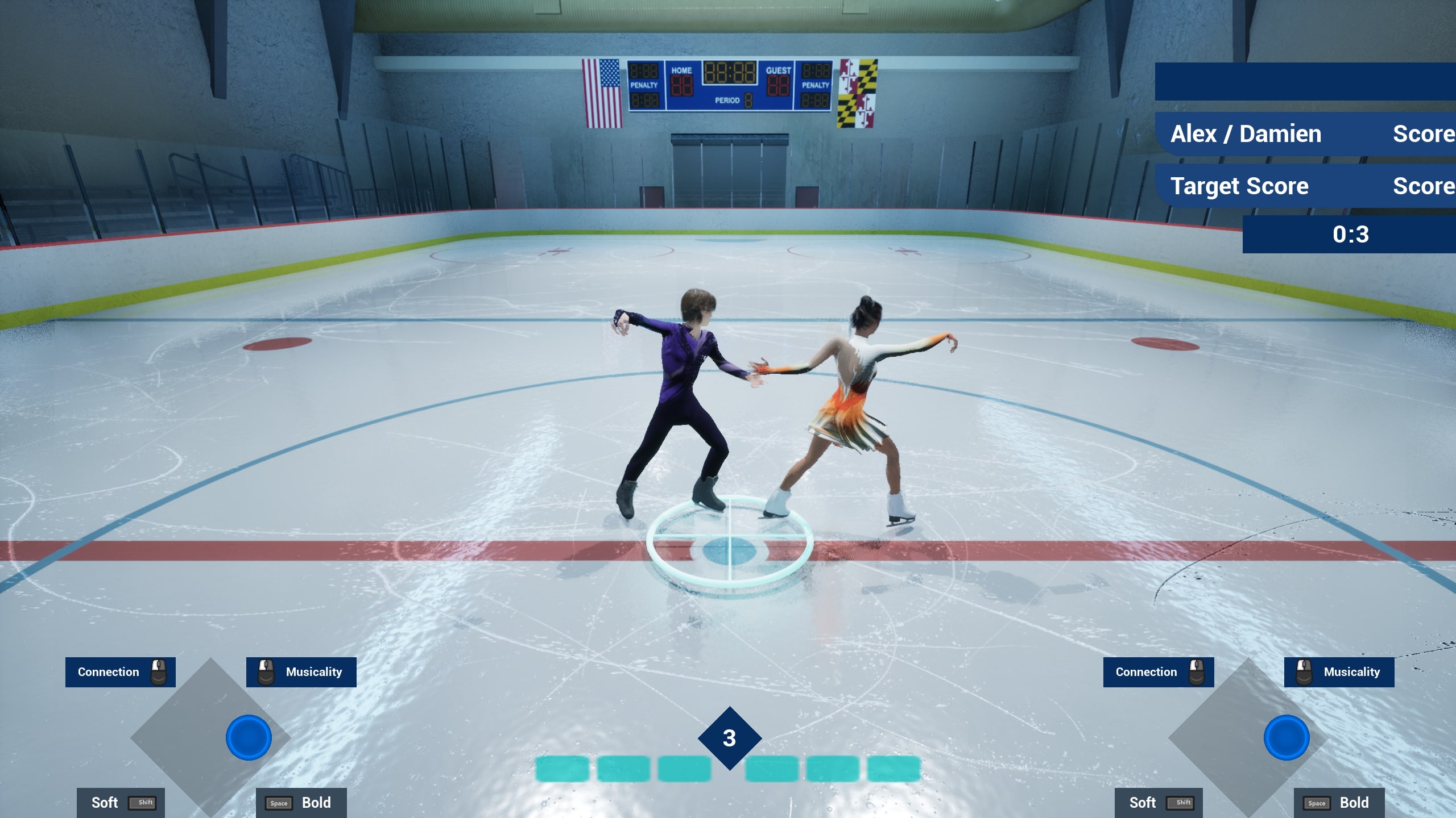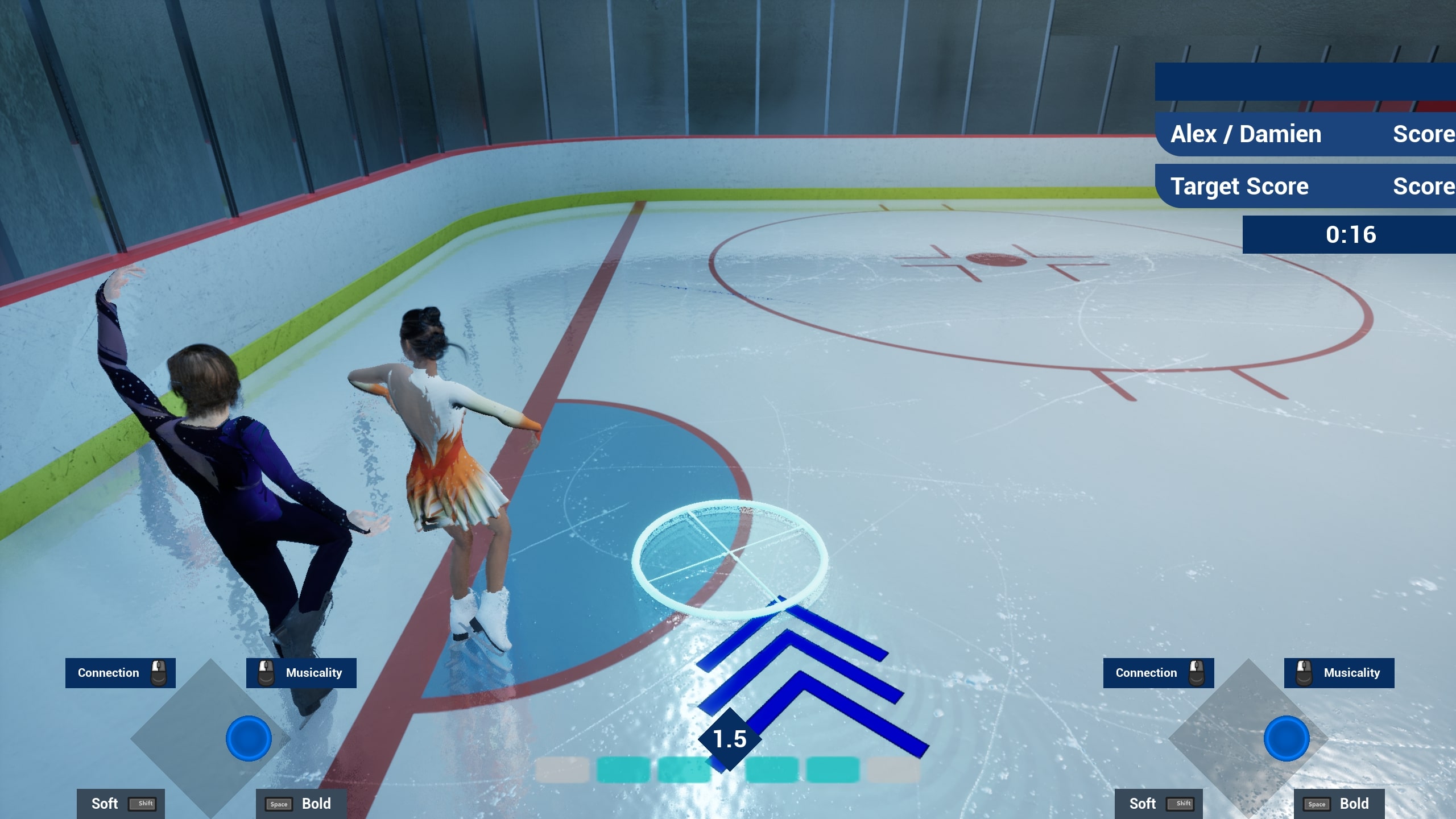 Blades on Ice is a cooperative figure skating game, with visual novel narrative elements. Players make use of motions on the left stick to perform twizzles, spins, and lifts. Gameplay blends rhythm timing, synchronized movement, and expressive presentation to capture the artistry of ice dance. Each performance is graded on musicality, connection, and precision. Players will spend they in practices where they can try different challenges and get tested on the next section of there performance, while improving both there character and there own skills