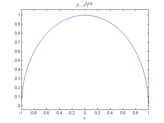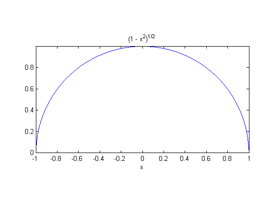 ezplot(sqrt(1-x^2),[-1,1]); axis equal; axis tight