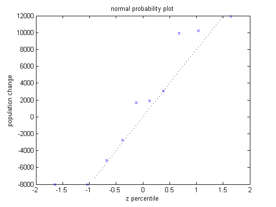 It seems quite clear that there are two "outliers", the tribes of Simeon and Menasseh. However, the changes for the other tribes do appear normally distributed. Again, we can verify this with a normal probability plot: