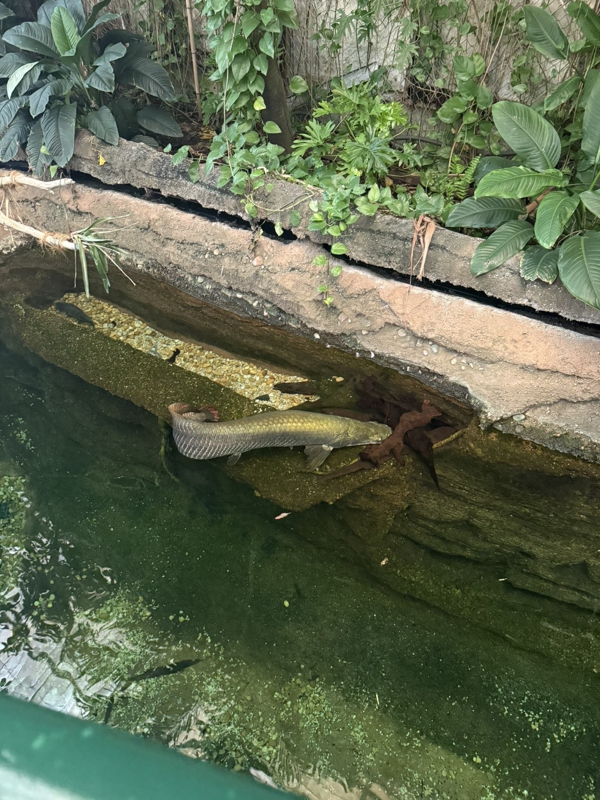 As you enter the park, there are big maps that show the different Zoo areas and all they have to offer. From Amazonia, to the Asia Trail, and the Bird House, there were various collections of plants and animals to learn about. Also on the map was a QR code that links patrons to a guide for each of the different areas of the Zoo. Using this guide, I was able to find specific areas of interest to me and observe, as well as read, about the various animals in each section. For example, on the Elephant Trails, I had the chance to walk over a massive bridge that spanned the Asian elephant’s area while observing them from above. A staff member nearby was explaining how the female was pregnant and soon expecting, but that the gestational period could be up to 22 months long. This got me thinking about how difficult it must be to bear offspring in the wild while still supporting yourself, and how this must be one of the reasons the beautiful species is endangered today. From this view, I could also clearly see how the elephants feed, using their strong trunks and ripping small bushes or other natural substrates out of the ground, then finessing the food into their mouths elegantly. After watching this, I read deeper about the elephant from the resource given to us and found that their trunk has about 150,000 muscle units and tendons that allow such precise but powerful movement. I had many other moments like these as different animals and their capabilities struck my interest. For example, I had seen the Arapaima on a favorite TV show of mine from my childhood and always took an interest in the animal. So, I was happily surprised to find one in the Amazonia exhibit. This gave me the opportunity to both see the animal in real life and use the linked resource to learn more about the fish, satisfying a personal interest I had not remembered for years. This Zoo excursion turned a childhood interest of mine into real learning that I will remember.