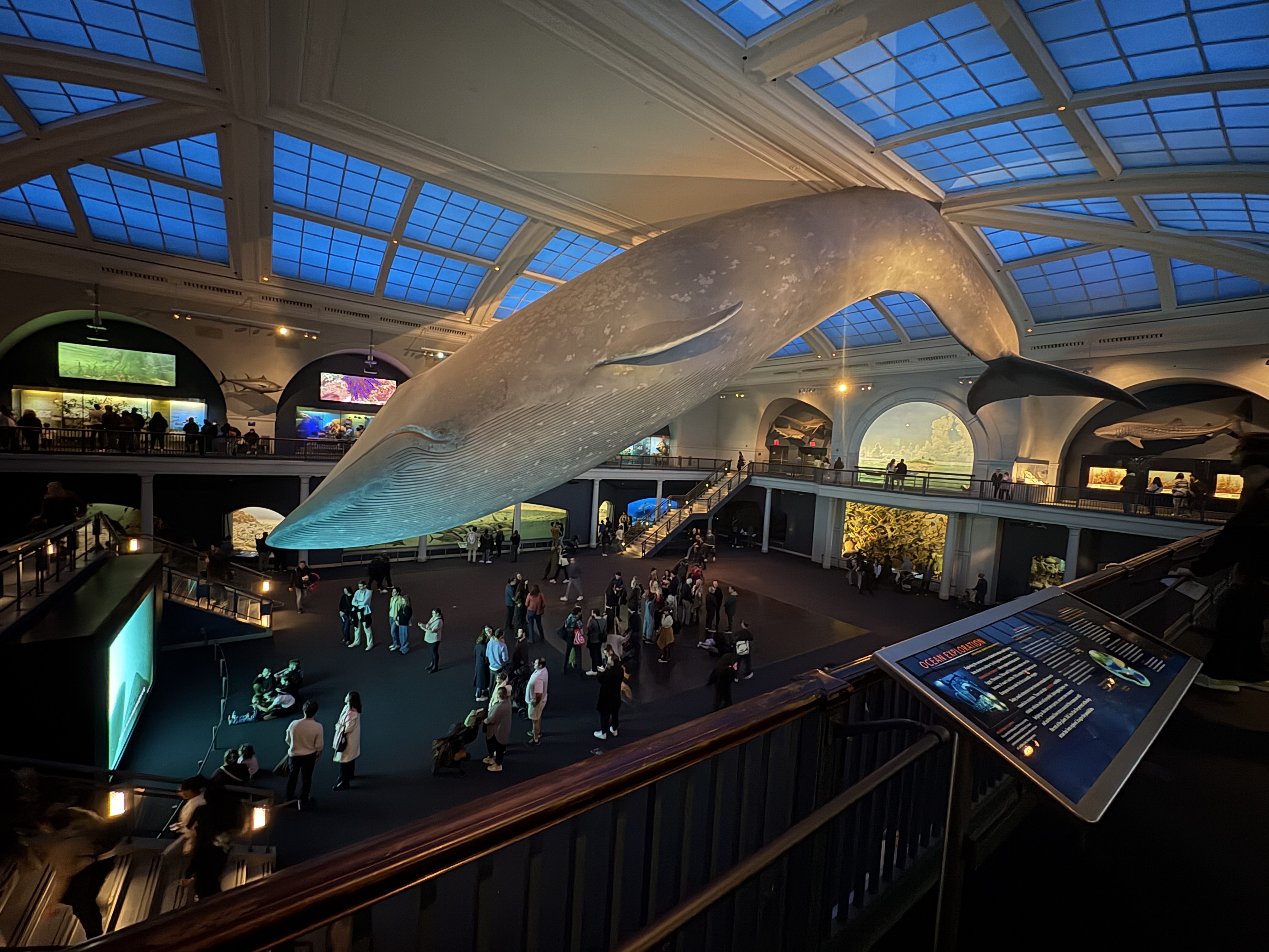 For my self guided observation, I went with a small group to the North American Mammals Hall. The hall was arranged with taxidermized animals in realistic habitats with painted backgrounds, which helped make each display look like a snapshot of real life in the wild. One exhibit that caught my attention was the mountain goat display. It showed that they live in southern Alaska and explained that baby goats can climb anywhere their mothers can within a week. It also said they can climb seventy five feet in a minute and included a map showing their range. Another display featured white tailed deer from New York. It explained that because early settlers eliminated eastern cougars and wolves, the deer population grew freely. When deer overwhelm an area, they can eat so much that new trees cannot grow, which then harms the deer themselves because they lose access to good food. The exhibit also identified the trees in the scene, like red maple and blackgum. Another display I saw was about the American mink, which can be found in New Jersey. The information explained that minks always live near water, eating fish and frogs underwater and small mammals near the shore. It pointed out their webbed feet and how their fur has been used in garments and even farmed for fashion. It also described how wild minks are usually deep brown but farmed ones can be bred in many colors. The exhibit included information about the plants shown with the mink. Most displays explained where the animals were from and provided helpful details, and overall I did not feel like there was information missing. The Space Show was a film at the Big Bang Theater narrated by Pedro Pascal. The theme was the birth of the universe. It described how gas clouds formed, galaxies with stars, and planets, as well as how galaxies collided and caused massive explosions. The images were very clear and stunning, and they looked real rather than like something created by a special effects team. There was information I didn’t know before, especially about how galaxies collide and about the telescope that captured images of the universe and nearby stars.