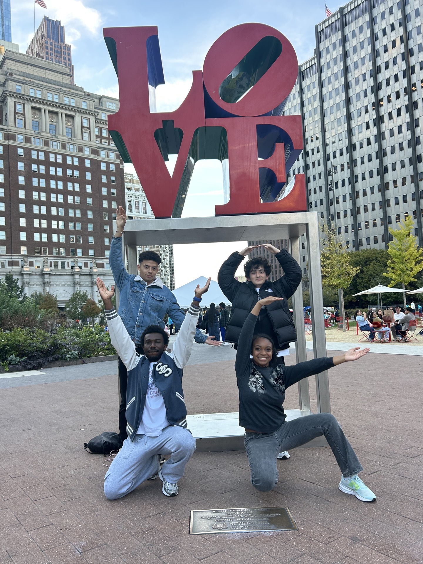 The tour guide also talked about the history of the Quaker community and others seeking religious freedom in Philadelphia is reflected by how multicultural and tight-knit the city is. I saw this aspect reflected my experiences going around the city to the Philadelphia Magic Gardens, which featured mosaics and multimedia art that pieced together the cultures, experiences, and desires of a variety of artists as a reflection of the diversity. I also realized it while posing with the group of friends I made in front of the LOVE statue, symbolic of the city of “brotherly love.”